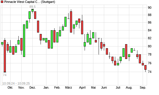 Mit dem Rücksetzer auf 73,50 EUR hat die Pinnacle West Capital-Aktie (ISIN US7234841010) am 09.09.2025 ein neues 12-Monats-Tief erreicht und damit den Kurs vom 20.09.2024 eingestellt.