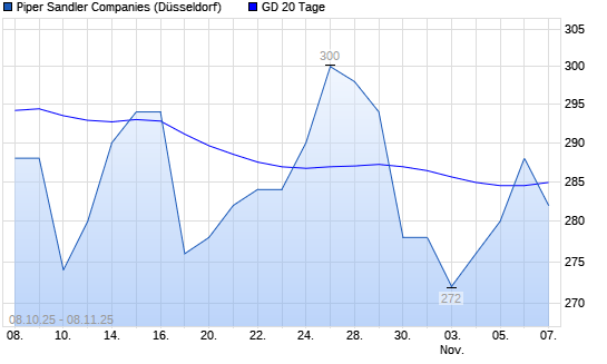 Mit dem Rücksetzer auf 276,00 EUR hat die Piper Sandler-Aktie am 07.11.2025 die 20-Tage-Linie nach unten gekreuzt.