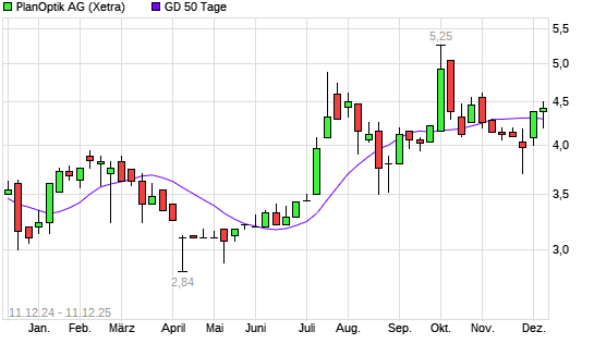 Mit dem Anstieg auf 4,26 EUR hat die Plan Optik-Aktie am 10.12.2025 die 50-Tage-Linie nach oben gekreuzt.