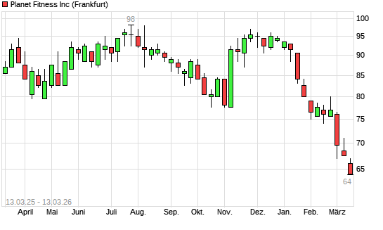 Mit dem Rücksetzer auf 64,50 EUR hat die Planet Fitness-Aktie (ISIN US72703H1014) am 12.03.2026 ein neues 12-Monats-Tief erreicht und damit den Kurs vom 10.03.2026 eingestellt.