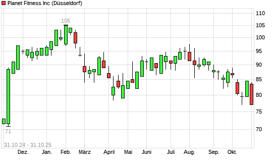 Mit dem Rücksetzer auf 77,50 EUR hat die Planet Fitness-Aktie (ISIN US72703H1014) am 30.10.2025 ein neues 6-Monats-Tief erreicht und damit den Kurs vom 29.10.2025 eingestellt.