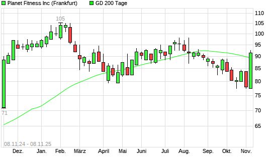 Mit dem Anstieg auf 91,50 EUR hat die Planet Fitness-Aktie am 07.11.2025 die 200-Tage-Linie nach oben gekreuzt.