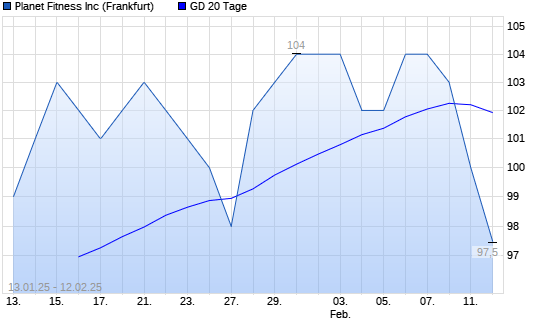 Mit dem Rücksetzer auf 100,00 EUR hat die Planet Fitness-Aktie am 11.02.2025 die 20-Tage-Linie nach unten gekreuzt.