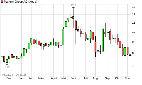 Mit dem Rücksetzer auf 7,42 EUR hat die Platform Group-Aktie (ISIN DE000A2QEFA1) am 05.11.2025 ein neues 6-Monats-Tief erreicht und damit den Kurs vom 04.11.2025 eingestellt.