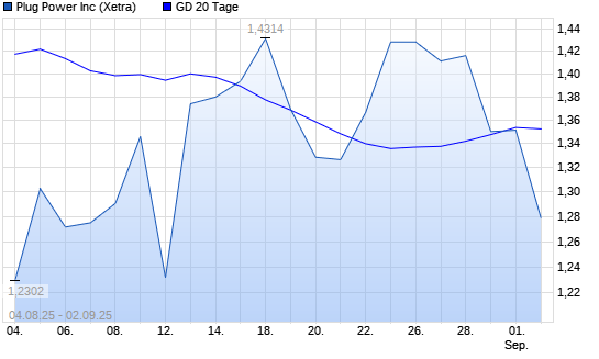 Mit dem Rücksetzer auf 1,35 EUR hat die Plug Power-Aktie am 01.09.2025 die 20-Tage-Linie nach unten gekreuzt.
