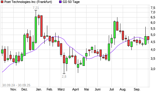 Mit dem Rücksetzer auf 4,62 EUR hat die Poet Technologies-Aktie am 29.09.2025 die 50-Tage-Linie nach unten gekreuzt.