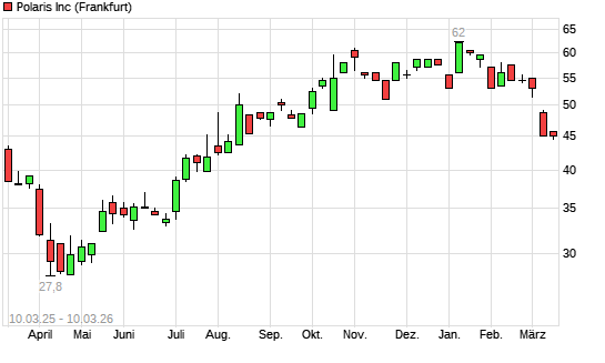 Mit dem Rücksetzer auf 44,40 EUR hat die Polaris-Aktie (ISIN US7310681025) am 09.03.2026 ein neues 6-Monats-Tief erreicht und damit den Kurs vom 06.03.2026 eingestellt.