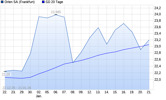 Mit dem Rücksetzer auf 22,90 EUR hat die Polski Koncern Naftowy Orlen-Aktie am 20.01.2026 die 20-Tage-Linie nach unten gekreuzt.
