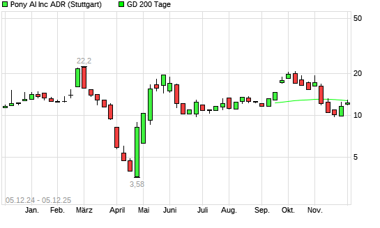 Mit dem Anstieg auf 12,40 EUR hat die Pony AI-Aktie am 04.12.2025 die 200-Tage-Linie nach oben gekreuzt.