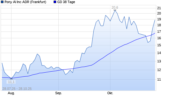 Mit dem Anstieg auf 16,80 EUR hat die Pony AI-Aktie am 27.10.2025 die 38-Tage-Linie nach oben gekreuzt.