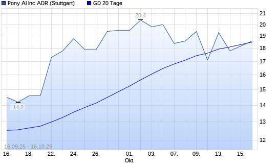 Mit dem Rücksetzer auf 17,90 EUR hat die Pony AI-Aktie am 15.10.2025 die 20-Tage-Linie nach unten gekreuzt.