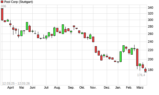 Mit dem Rücksetzer auf 177,70 EUR hat die Pool-Aktie (ISIN US73278L1052) am 11.03.2026 ein neues 5-Jahres-Tief erreicht und damit den Kurs vom 09.03.2026 eingestellt.