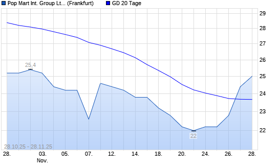 Mit dem Anstieg auf 24,20 EUR hat die Pop Mart International-Aktie am 27.11.2025 die 20-Tage-Linie nach oben gekreuzt.