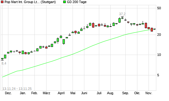 Mit dem Rücksetzer auf 24,20 EUR hat die Pop Mart International-Aktie am 12.11.2025 die 200-Tage-Linie nach unten gekreuzt.