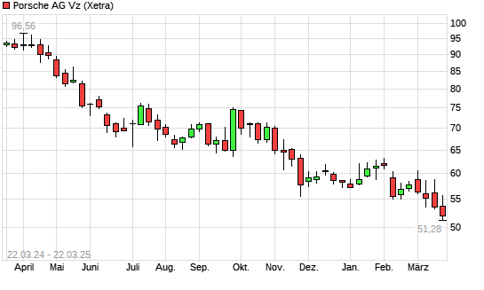 Mit dem Rücksetzer auf 51,98 EUR hat die Porsche AG Vz.-Aktie (ISIN DE000PAG9113) am 21.03.2025 ein neues All-Time-Low erreicht und damit den Kurs vom 20.03.2025 eingestellt.