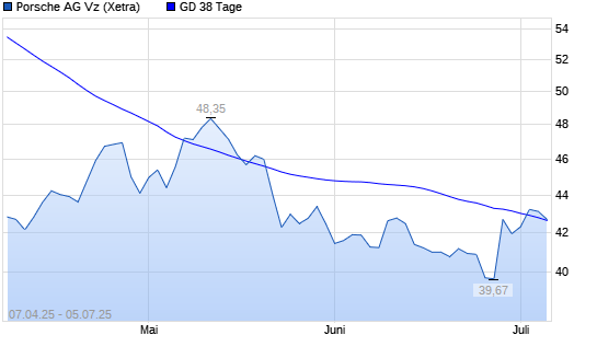 Mit dem Rücksetzer auf 42,70 EUR hat die Porsche AG Vz.-Aktie am 04.07.2025 die 38-Tage-Linie nach unten gekreuzt.