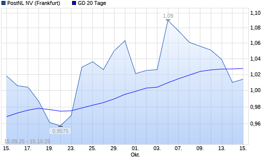 Mit dem Rücksetzer auf 1,01 EUR hat die PostNL-Aktie am 14.10.2025 die 20-Tage-Linie nach unten gekreuzt.