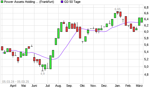 Mit dem Anstieg auf 6,35 EUR hat die Power Assets Holdings-Aktie am 04.03.2025 die 50-Tage-Linie nach oben gekreuzt.
