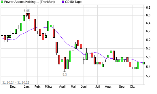 Mit dem Rücksetzer auf 5,45 EUR hat die Power Assets Holdings-Aktie am 30.10.2025 die 50-Tage-Linie nach unten gekreuzt.
