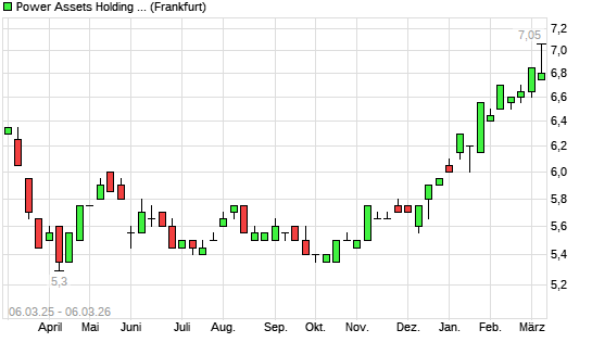 Mit dem Anstieg auf 7,05 EUR hat die Power Assets Holdings-Aktie (ISIN HK0006000050) am 05.03.2026 ein neues 5-Jahres-Hoch erreicht und damit den Kurs vom 03.03.2026 eingestellt.Die ...weiterlesen