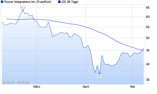 Mit dem Anstieg auf 44,80 EUR hat die Power Integrations-Aktie am 08.05.2025 die 38-Tage-Linie nach oben gekreuzt.