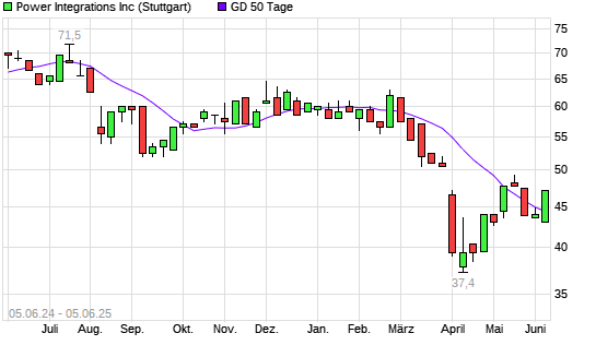Mit dem Anstieg auf 44,40 EUR hat die Power Integrations-Aktie am 04.06.2025 die 50-Tage-Linie nach oben gekreuzt.