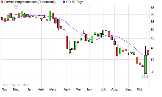 Mit dem Anstieg auf 37,60 EUR hat die Power Integrations-Aktie am 24.10.2025 die 50-Tage-Linie nach oben gekreuzt.