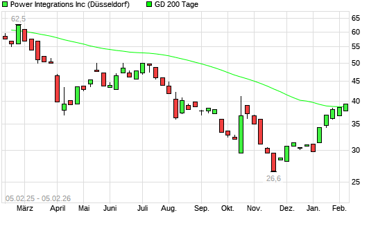 Mit dem Rücksetzer auf 37,80 EUR hat die Power Integrations-Aktie am 04.02.2026 die 200-Tage-Linie nach unten gekreuzt.