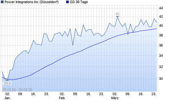 Mit dem Rücksetzer auf 39,40 EUR hat die Power Integrations-Aktie am 23.03.2026 die 38-Tage-Linie nach unten gekreuzt.