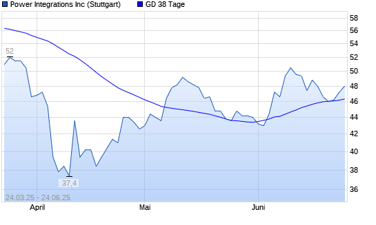Mit dem Rücksetzer auf 46,00 EUR hat die Power Integrations-Aktie am 23.06.2025 die 38-Tage-Linie nach unten gekreuzt.Die Power Integrations-Aktie befindet sich seit dem 28.02.2025 im langfristigen ...weiterlesen