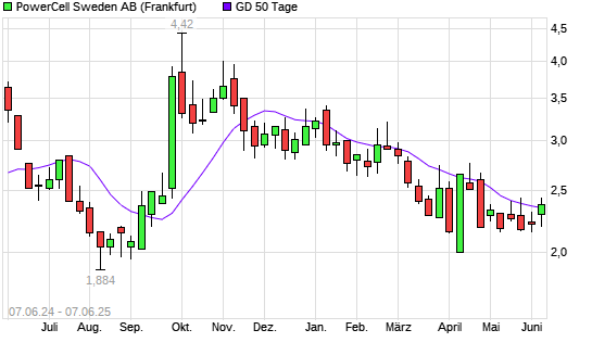 Mit dem Anstieg auf 2,38 EUR hat die PowerCell Sweden-Aktie am 06.06.2025 die 50-Tage-Linie nach oben gekreuzt.