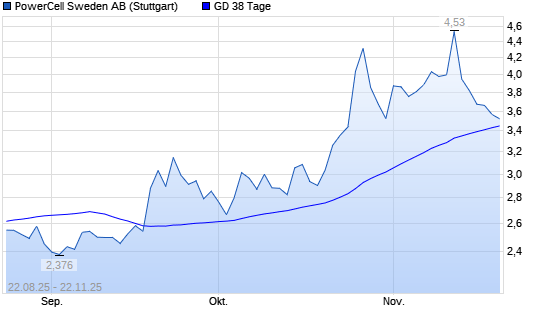 Mit dem Rücksetzer auf 3,46 EUR hat die PowerCell Sweden-Aktie am 21.11.2025 die 38-Tage-Linie nach unten gekreuzt.