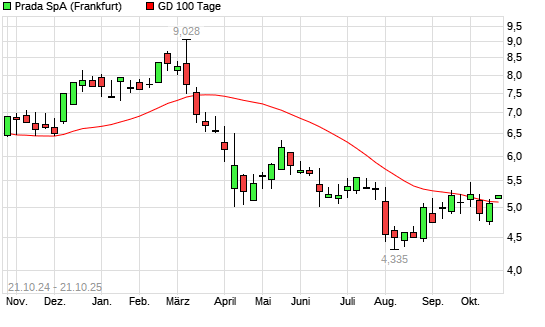 Mit dem Anstieg auf 5,19 EUR hat die Prada-Aktie am 20.10.2025 die 100-Tage-Linie nach oben gekreuzt.