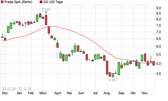 Mit dem Anstieg auf 5,09 EUR hat die Prada-Aktie am 20.11.2025 die 100-Tage-Linie nach oben gekreuzt.