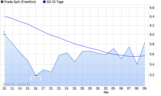 Mit dem Anstieg auf 5,84 EUR hat die Prada-Aktie am 09.05.2025 die 20-Tage-Linie nach oben gekreuzt.