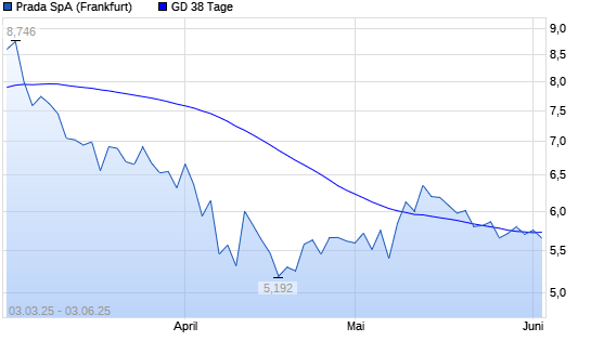 Mit dem Anstieg auf 5,75 EUR hat die Prada-Aktie am 02.06.2025 die 38-Tage-Linie nach oben gekreuzt.