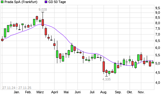 Mit dem Anstieg auf 5,19 EUR hat die Prada-Aktie am 26.11.2025 die 50-Tage-Linie nach oben gekreuzt.