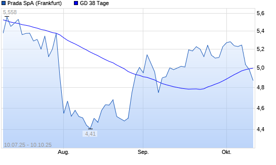 Mit dem Rücksetzer auf 4,98 EUR hat die Prada-Aktie am 09.10.2025 die 38-Tage-Linie nach unten gekreuzt.