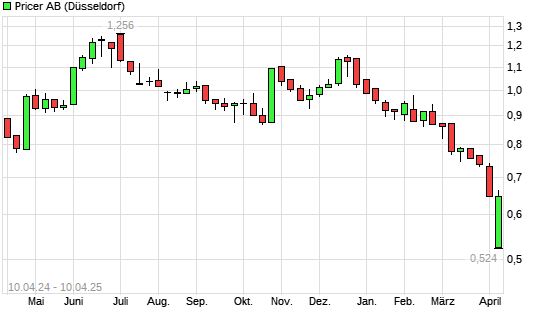 Mit dem Rücksetzer auf 0,61 EUR hat die Pricer-Aktie (ISIN SE0000233934) am 09.04.2025 ein neues 12-Monats-Tief erreicht und damit den Kurs vom 07.04.2025 eingestellt.