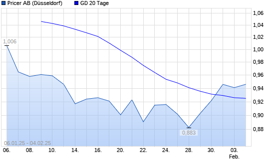 Mit dem Anstieg auf 0,93 EUR hat die Pricer-Aktie am 03.02.2025 die 20-Tage-Linie nach oben gekreuzt.