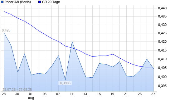 Mit dem Rücksetzer auf 0,39 EUR hat die Pricer-Aktie am 26.08.2025 die 20-Tage-Linie nach unten gekreuzt.