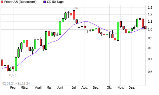 Mit dem Rücksetzer auf 1,00 EUR hat die Pricer-Aktie am 30.12.2024 die 50-Tage-Linie nach unten gekreuzt.