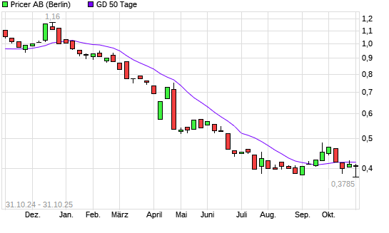 Mit dem Rücksetzer auf 0,40 EUR hat die Pricer-Aktie am 30.10.2025 die 50-Tage-Linie nach unten gekreuzt.