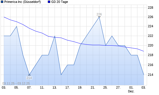 Mit dem Anstieg auf 222,00 EUR hat die Primerica-Aktie am 02.12.2025 die 20-Tage-Linie nach oben gekreuzt.