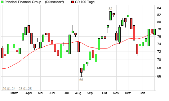 Mit dem Anstieg auf 78,00 EUR hat die Principal Financial-Aktie am 27.01.2025 die 100-Tage-Linie nach oben gekreuzt.