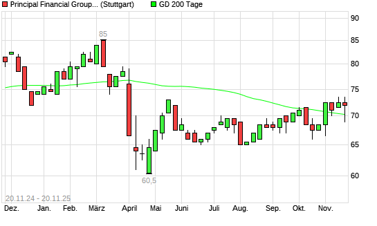Mit dem Anstieg auf 71,00 EUR hat die Principal Financial-Aktie am 19.11.2025 die 200-Tage-Linie nach oben gekreuzt.