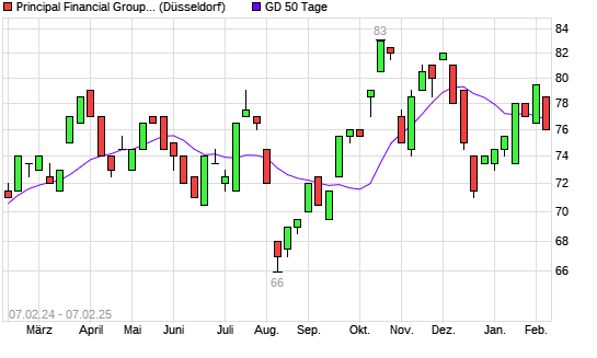 Mit dem Anstieg auf 77,00 EUR hat die Principal Financial-Aktie am 06.02.2025 die 50-Tage-Linie nach oben gekreuzt.