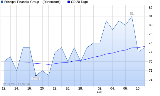 Mit dem Rücksetzer auf 77,50 EUR hat die Principal Financial-Aktie am 10.02.2026 die 20-Tage-Linie nach unten gekreuzt.