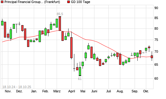 Mit dem Rücksetzer auf 67,50 EUR hat die Principal Financial-Aktie am 17.10.2025 die 100-Tage-Linie nach unten gekreuzt.Die Principal Financial-Aktie befindet sich seit dem 13.10.2025 im ...weiterlesen