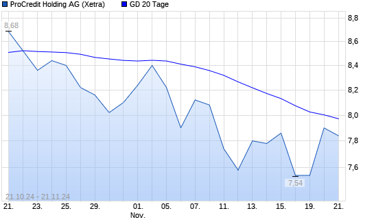 Mit dem Anstieg auf 8,10 EUR hat die ProCredit Holding-Aktie am 20.11.2024 die 20-Tage-Linie nach oben gekreuzt.